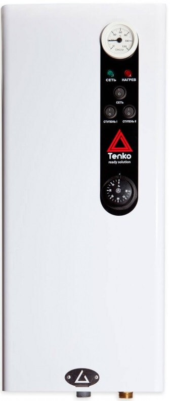 Котли серії Тенко Стандарт відрізняються більш повним оснащенням, яке робить це обладнання безпечнішим. Серія Стандарт оснащена додатковою 2-ступінчастою системою захисту котла від перегріву котла, датчиком протоки теплоносія, що блокує роботу ТЕНів при відсутності рідини в системі, запобіжним клапаном, що не допускає перевищення тиску в системі понад 3-х атмосфер, автоматичним відвідником повітря, більш новою моделлю циркуля з трьома швидкостями, термометром та зручнішими світловими індикаторами, для контролю роботи електрокотла Тенко Стандарт.