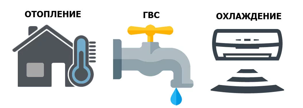 Круглогодичная подача гарячої води забезпечується за допомогою додаткового водонагрівача непрямого нагріву , приєднаного до опалювального контуру теплового насоса.