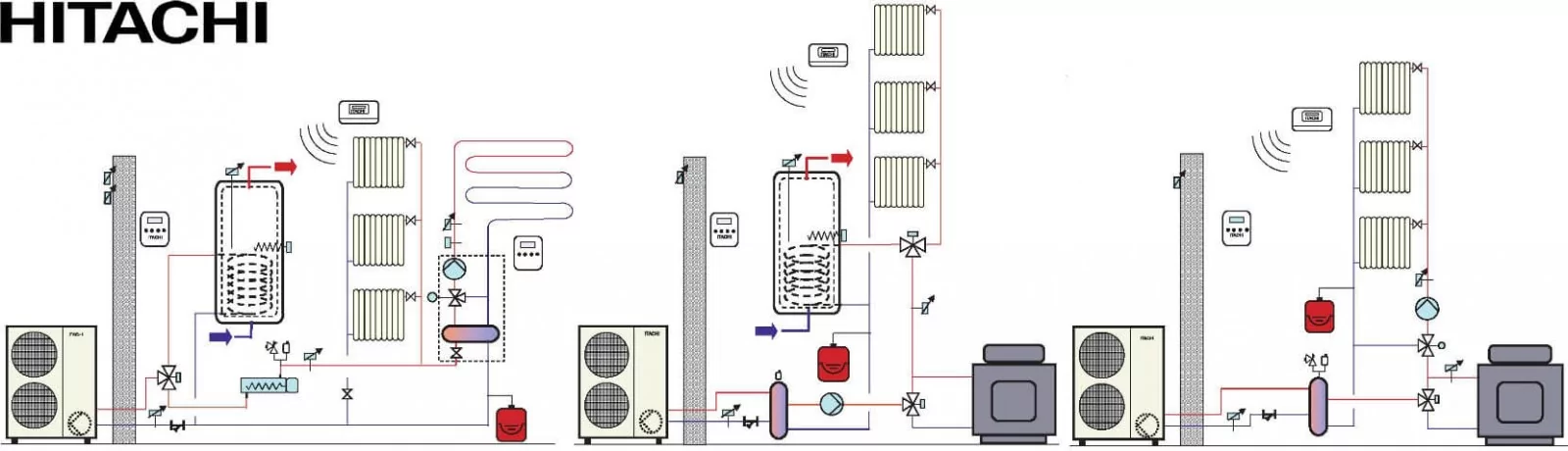 Тепловий насос для опалення Hitachi RASM-6VNE серії Yutaki M типу повітря-вода може працювати з фанкойлами, з теплою підлогою і радіаторами низькотемпературними.
