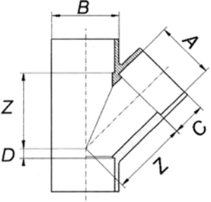 Габаритні розміри ПВХ трійника д.63мм 45 град. Coraplax: