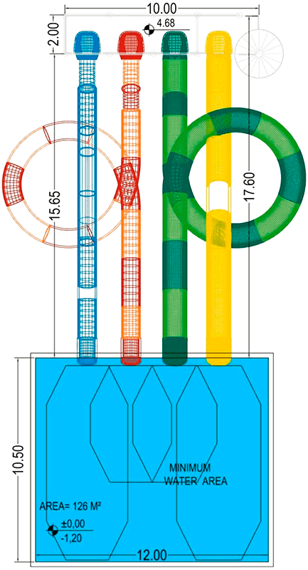 Комбінована аква-зона з водними гірками Tunnel Freefall, Aquatube, Body Slide та Freefall