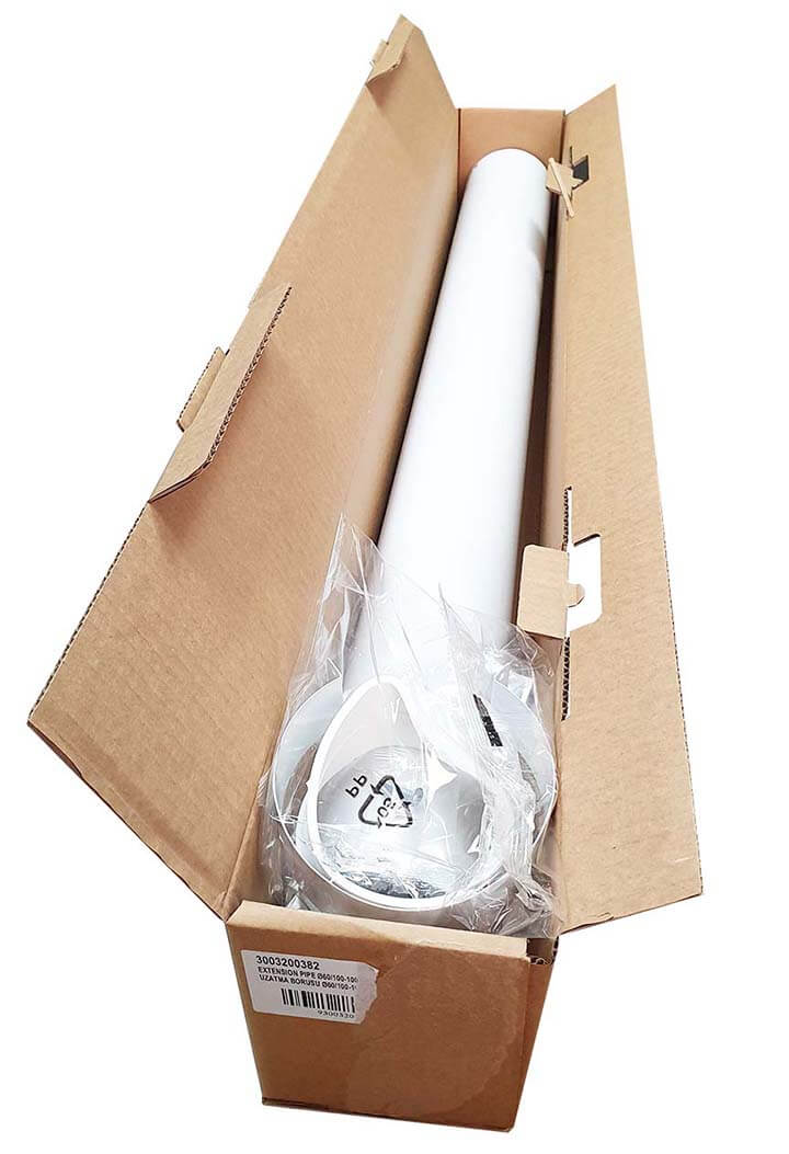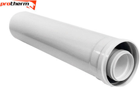 В деяких випадках при монтажі котла може не вистачити довжини коаксіального проходу і вирішенням даної проблеми є додатковий елемент коаксіального димоходу - подовжувач. Довжина даного коаксіального подовжувача Протерм 2000 мм.
