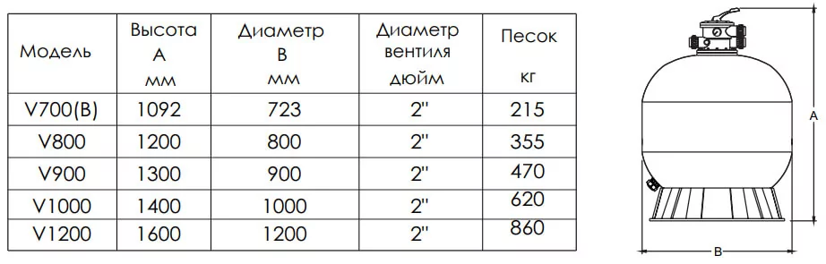 Фільтр механічного очищення води у басейні об'ємом до 125 м3. Фільтраційна ємність з верхнім підключенням клапана, виготовлена з мотаного скловолокна, найнадійнішого матеріалу. Поверхня фільтра покрита лаком для захисту від впливу УФ, що дозволяє його встановлення просто неба.