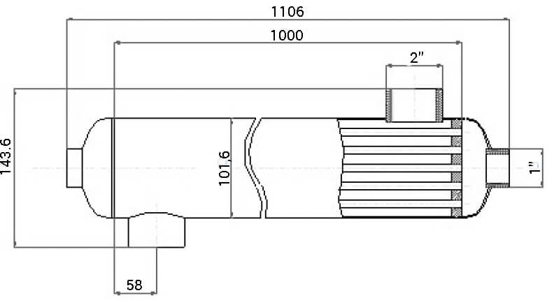 Теплообмінник можна застосовувати для нагрівання води з додаванням солі (морської). Корпус трубчастого теплообмінника виготовляється з нержавіючої 316-ї сталі, стійкої до корозії. Фітинги сполучні для вторинного контуру постачаються в комплекті з теплообмінником.