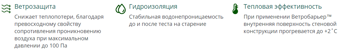 За своїми властивостями і характеристиками мембрана Вітробар'єр JUTA відповідає рекомендаціям ДБН В.2.6-31: 2006 «Теплова ізоляція будівель» для застосування в якості вітрогідрозахистна шару в системах навісних вентильованих фасадів.