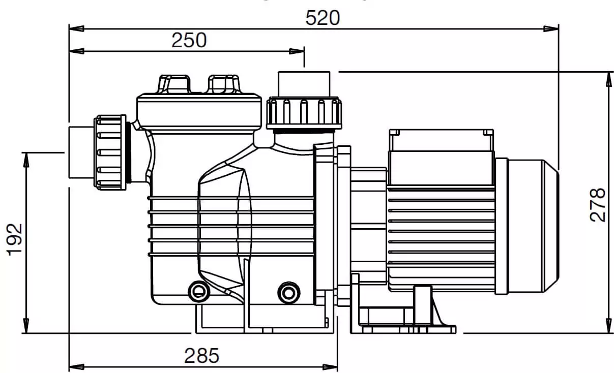 Циркуляційний насос для системи фільтрації води в басейнах об'ємом до 55 м3. Продуктивність насоса становить 11,3 м3/година висоту 8 метрів. Потужність насоса – 0,53 квт. У гідравлічній частині пристрою використовується крильчатка, запатентована виробником, що підвищує ефективність на 15-20% щодо аналогів.