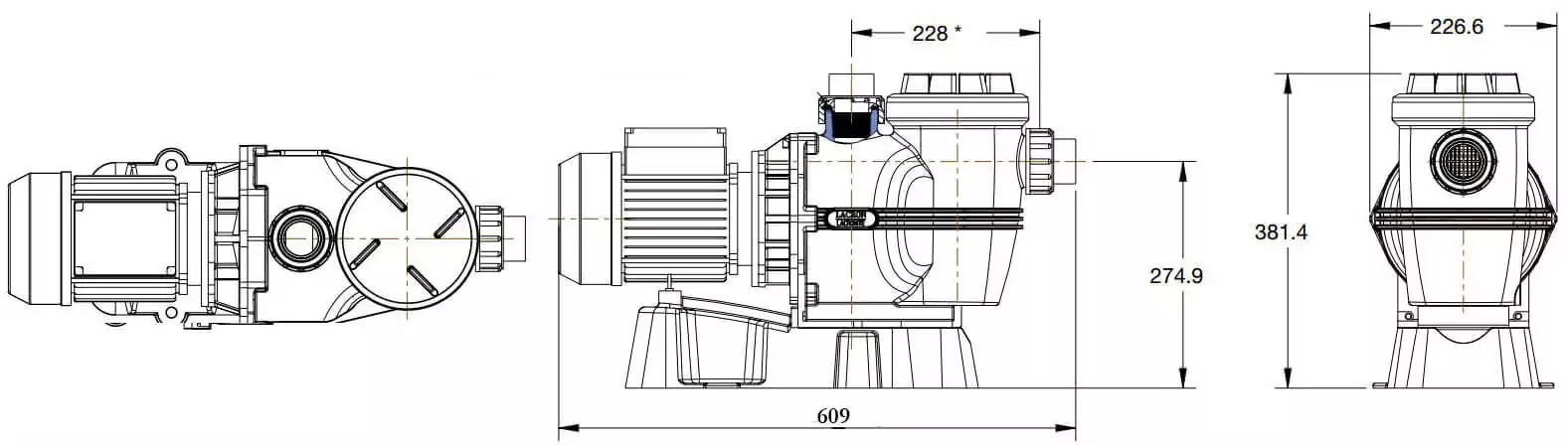 Циркуляційний насос системи водообміну в басейнах об'ємом до 80 м3. Потужність насоса – 1,1 квт. Країна-виробник – Англія. Блок префільтра виконує функцію фільтра грубого очищення та захищає гідроблок від пошкоджень. Кришка кошика грубої очистки, прозора, для легкого контролю рівня забруднення.