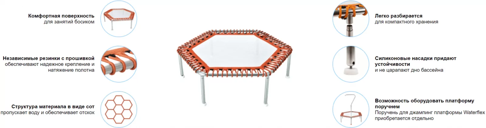 Waterflex Aquatic Jumping – платформа для стрибків. Використовується для проведення кардіо тренувань у басейні та реабілітації опорно-рухового апарату.