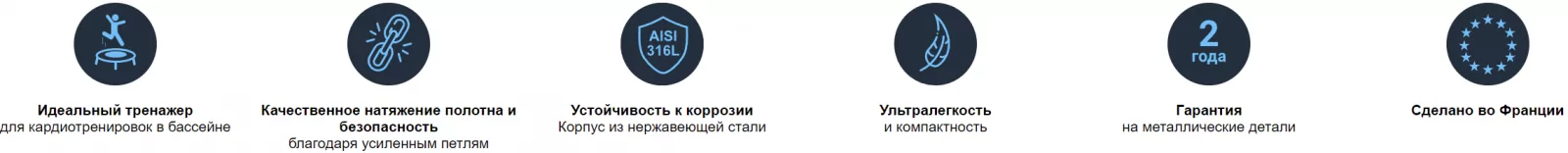 Виробник тренажера – французька компанія Waterflex. Платформа для стрибків зроблена експертами у сфері обладнання для аквафітнесу та інших водних фізичних вправ – компанією Waterflex.