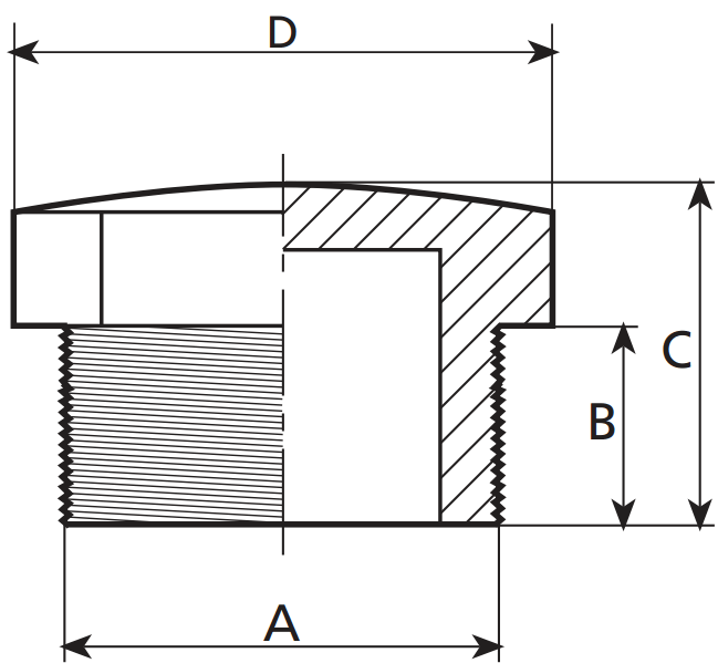 Габаритні розміри різьбової заглушки Coraplax (нар. різьблення 1"):</p >