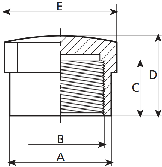 Габаритні розміри різьбовій заглушки Coraplax (внутр. Різьба 1 1/2 "):