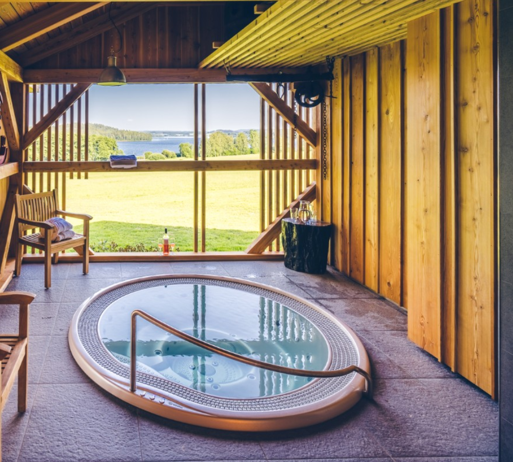 Изящный поручень, ступени с противоскользящей поверхностью гарантируют безопасность во время погружения в SPA.