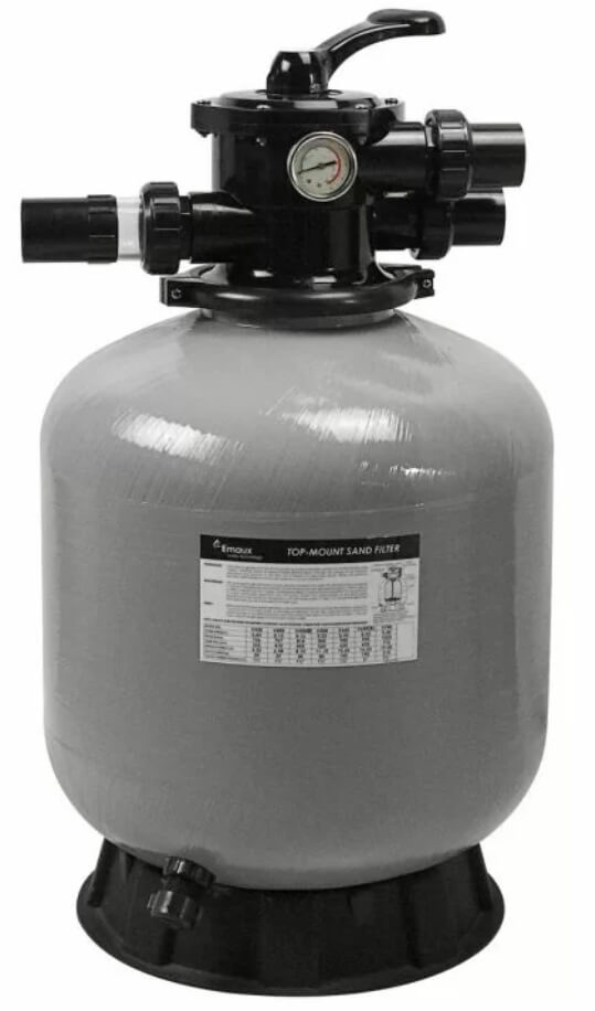 Фильтр механической очистки воды в бассейне объемом до 18 м3. Фильтрационная емкость с верхним подключением клапана, изготовлена из мотаного стекловолокна, самого надежного материала. Поверхность фильтра покрыта лаком для защиты от воздействия УФ, что позволяет его установку под открытым небом.