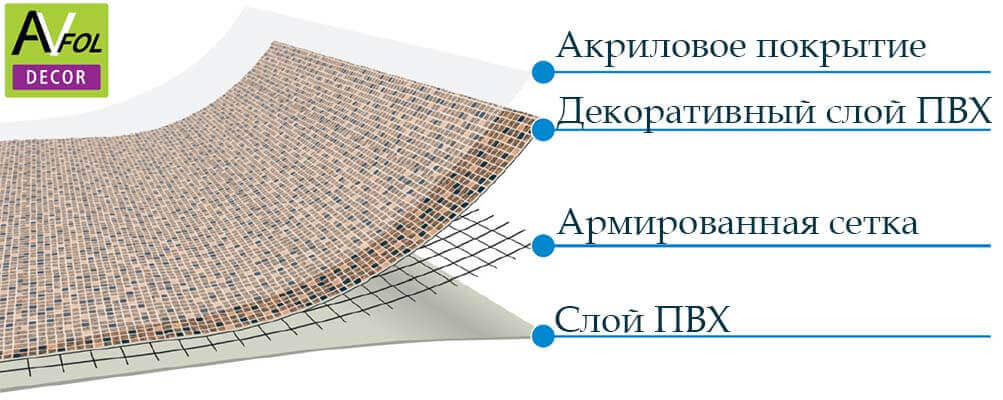 Серия ПВХ мембраны AVfol Décor покрыта антибактериальным акриловым слоем, что упрощает уход за бассейном.