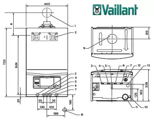 Выхлопные газы охлаждаются, имеющаяся в них влага конденсируется, благодаря чему среднее значение за сезон КПД газового котла Vaillant ecoTEC pro VUW INT 346/5-3 достигает 107% (расчет как для турбо котла).