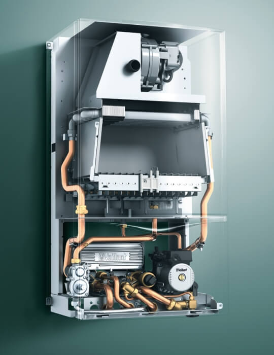 Мощность модели VUW INT 282/5-5 достигает показателя в 28 кВт. Для плавного переключения мощностей в газовый клапан котлов вмонтирован шаговый двигатель. В турбокотлах Vaillant turboTEC plus VUW INT 282/5-5 продукты сгорания выводятся принудительно (закрытая камера сгорания).